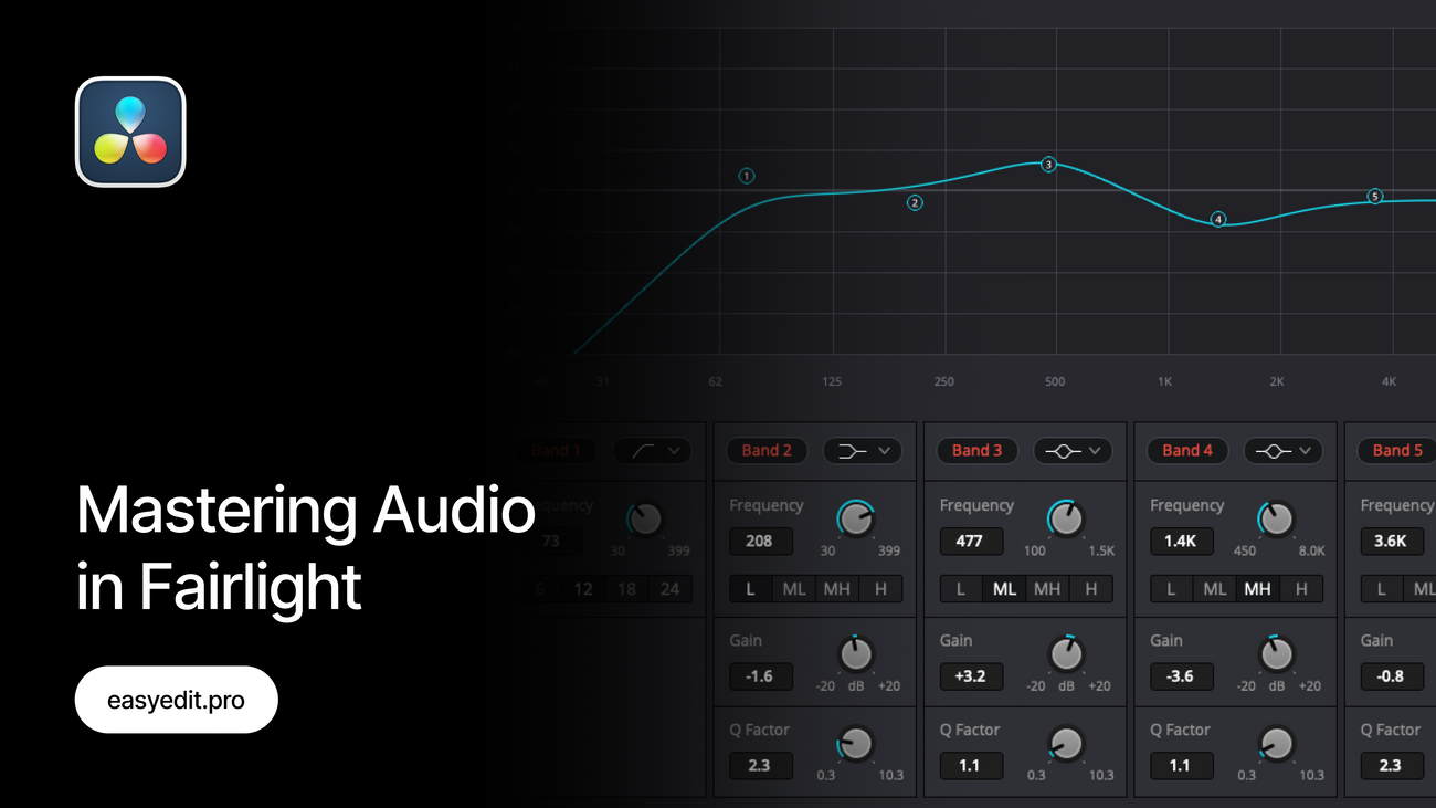 Even with good recording equipment, you’d see a great difference after applying Compression, EQ settings, De-esser and Voice Isolation to your track. Tools within Fairlight can dramatically polish your audio, which can be easier to do in the Studio version of DaVinci Resolve.